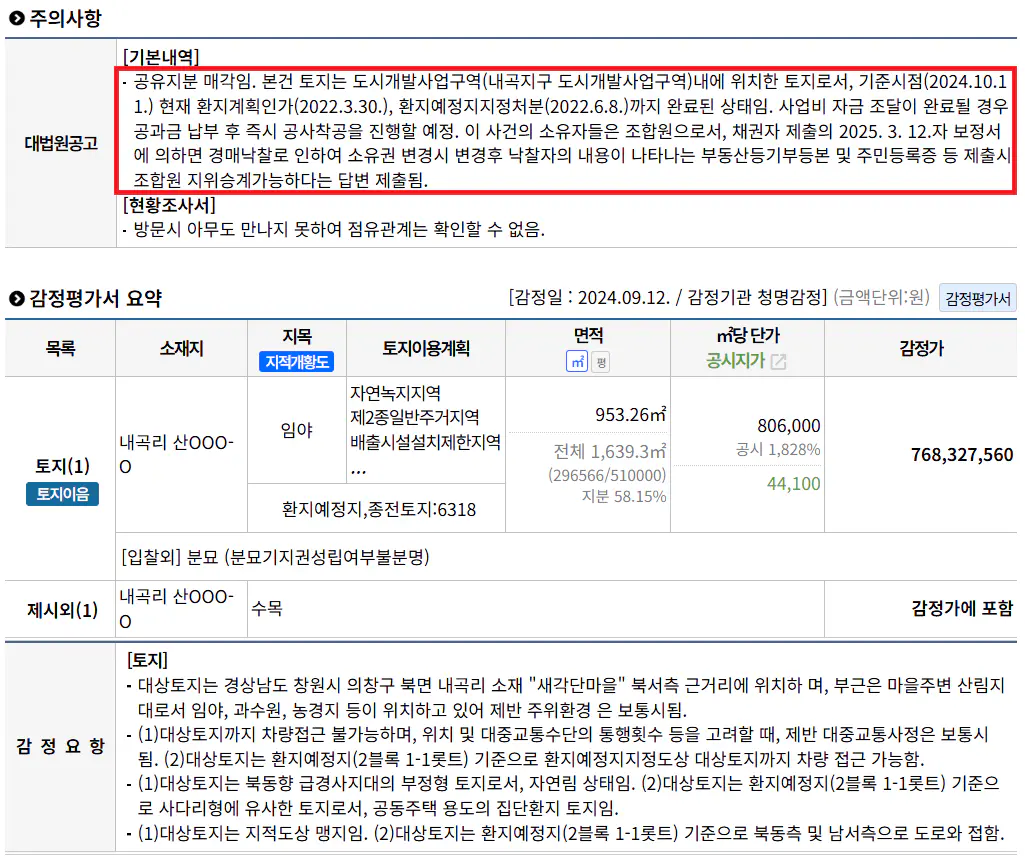 ±×¸®°í ÀÌ °æ¸Å¹°°ÇÀº ÁöºÐ¸Å°¢ÀÔ´Ï´Ù. °øÀ¯ÁöºÐ ¸Å°¢À̹ǷΠ³«Âû ÈÄ Àüü ÅäÁö¸¦ ¸¶À½´ë·Î óºÐÇÒ ¼ö ¾ø½À´Ï´Ù. ´Ù¸¸, º» °ÇÀº ȯÁö¿¹Á¤Áö°¡ ÁöÁ¤µÇ¾î ÀÖ¾î, ÇâÈÄ »ç¾÷ ¿Ï·á ½Ã ³«Âû¹ÞÀº ÁöºÐ¿¡ ÇØ´çÇϴ ȯÁöµÈ ÅäÁöÀÇ ¼ÒÀ¯±ÇÀ» °®°Ô µÇ´Â ÀåÁ¡ÀÌ ÀÖ½À´Ï´Ù.